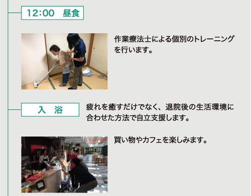 作業療法士は心身機能の向上、やり方の工夫や変更の練習、環境の調整や整備を通し、生活行為の向上を支援します。