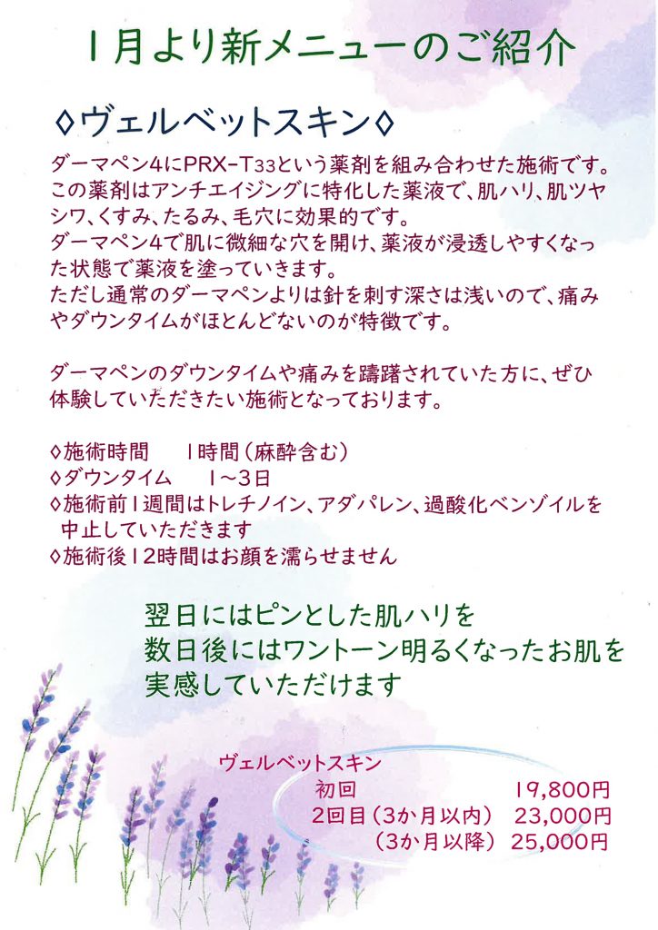 あいなクリニック 新メニュー「ヴェルベットスキンのご紹介」