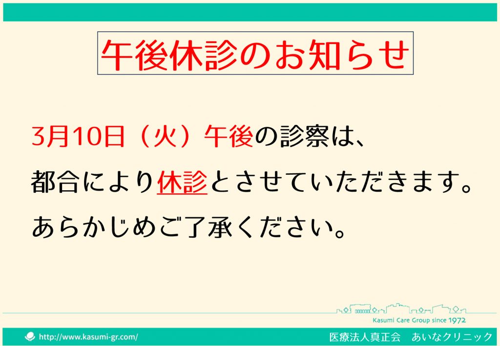 あいなクリニック 3月10日(火) 午後休診のお知らせ