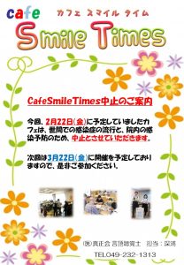 2月22日(金)に予定していましたカフェは、世間での感染症の流行と、院内の感染予防のため中止とさせていただきます。