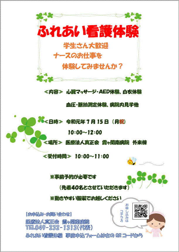 7月15日(月祝)にふれあい看護体験2019が開催されます。お気軽にご参加ください。