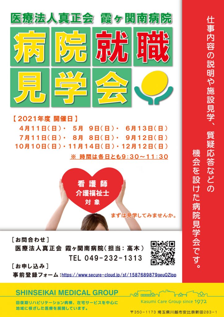 看護・介護職向け病院就職見学会2021年の日程を掲載しました
