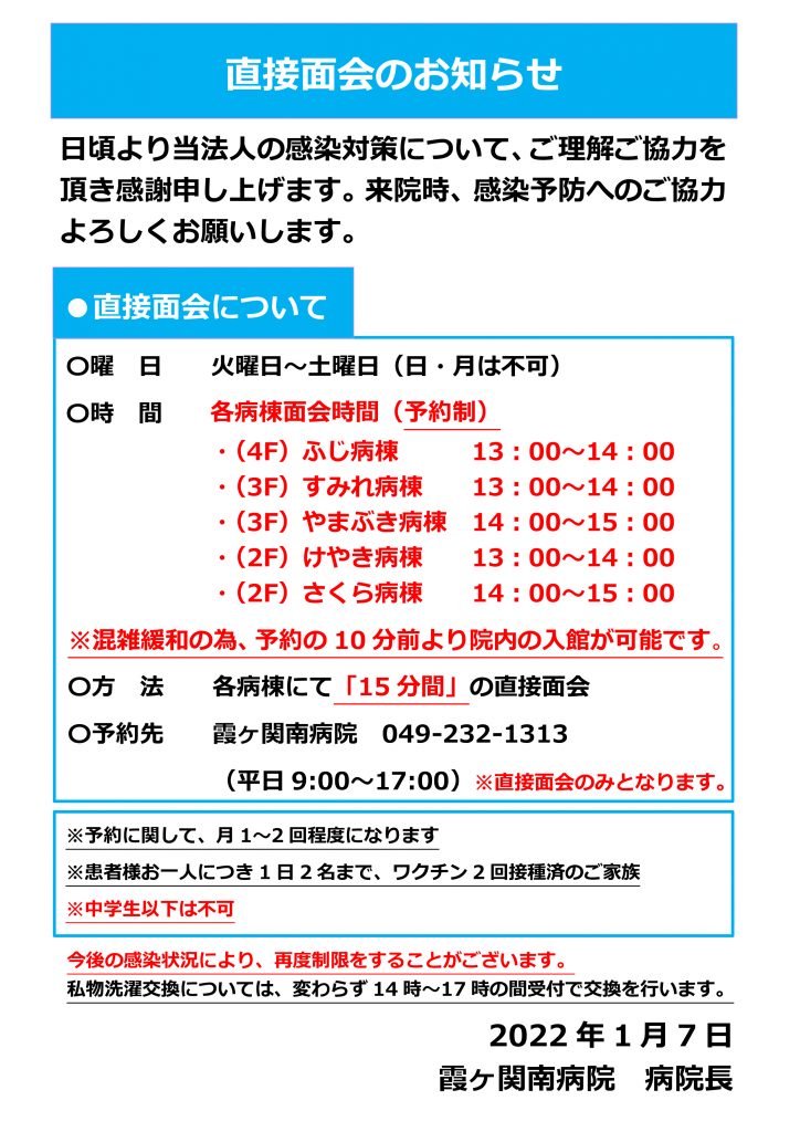 直接面会のお知らせ