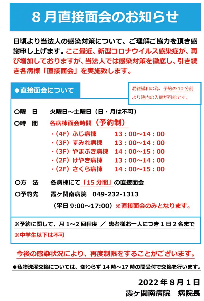 8月直接面会のお知らせ