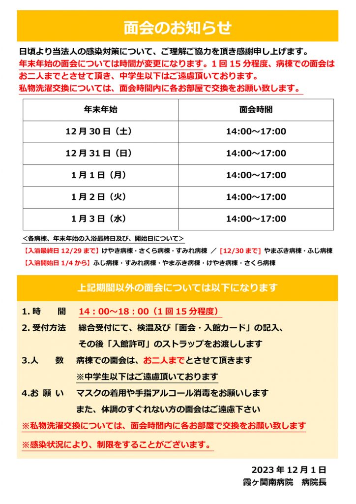 年末年始の面会について