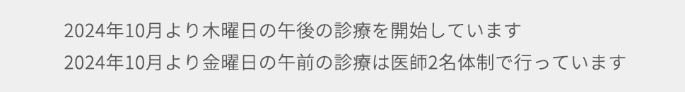 | 午前 | 太田 房代 | 佐藤 綾子 | 太田 房代 | 佐藤 綾子 | 佐藤 綾子 (1診) 佐藤 詩穂里(3診) |