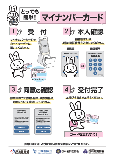 当院はオンライン資格確認を行う体制を有し、質の高い診療を実施するための十分な情報(薬剤情報、特定健診情報その他必要な情報)を取得・活用して診療を行っております。