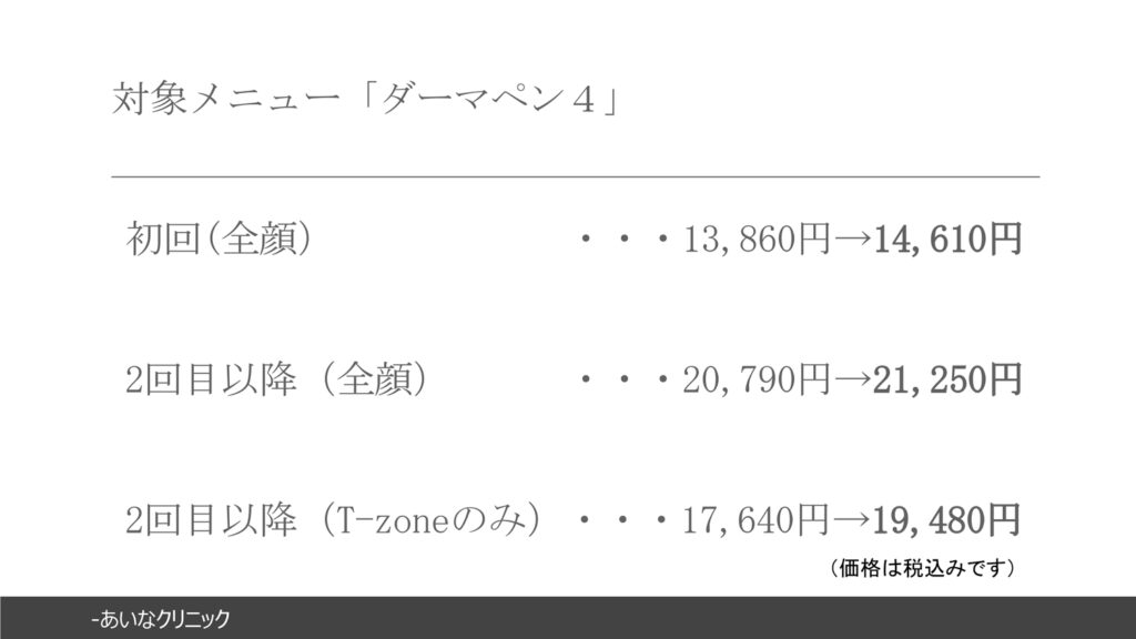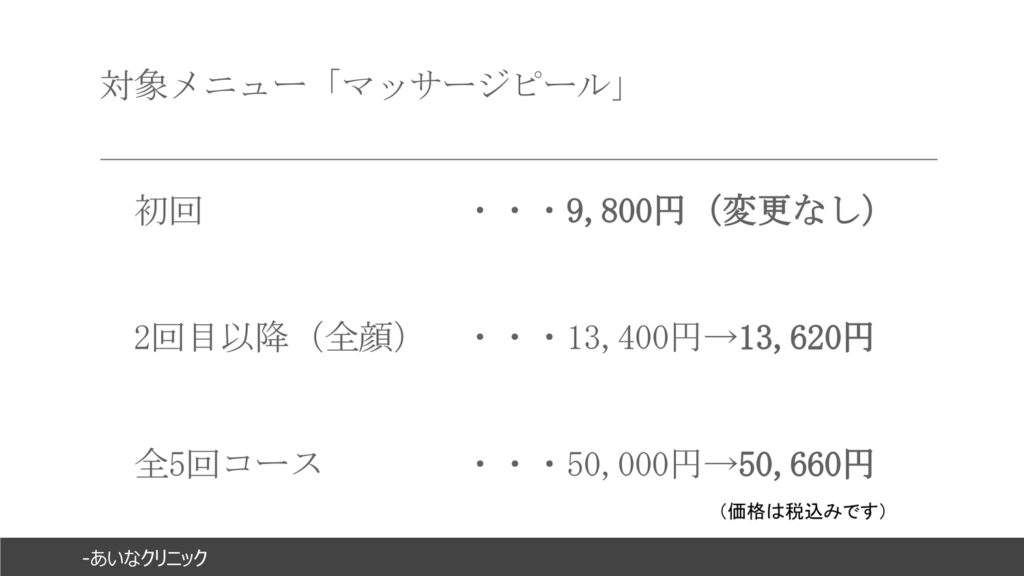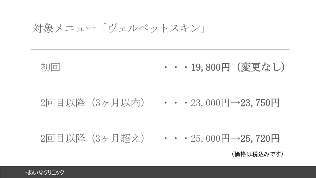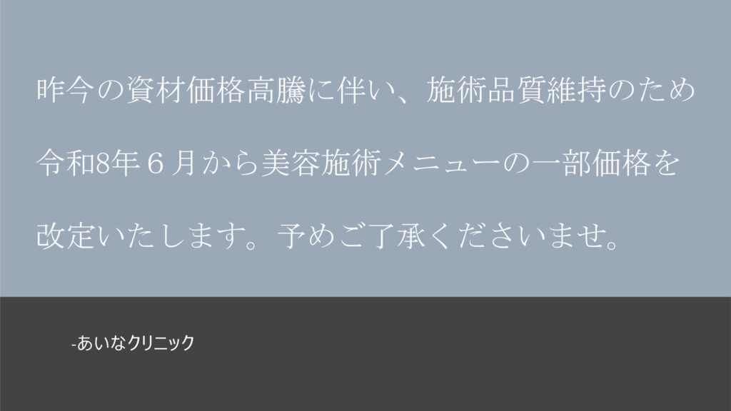 あいなクリニック 6月~美容施術価格一部変更のお知らせ